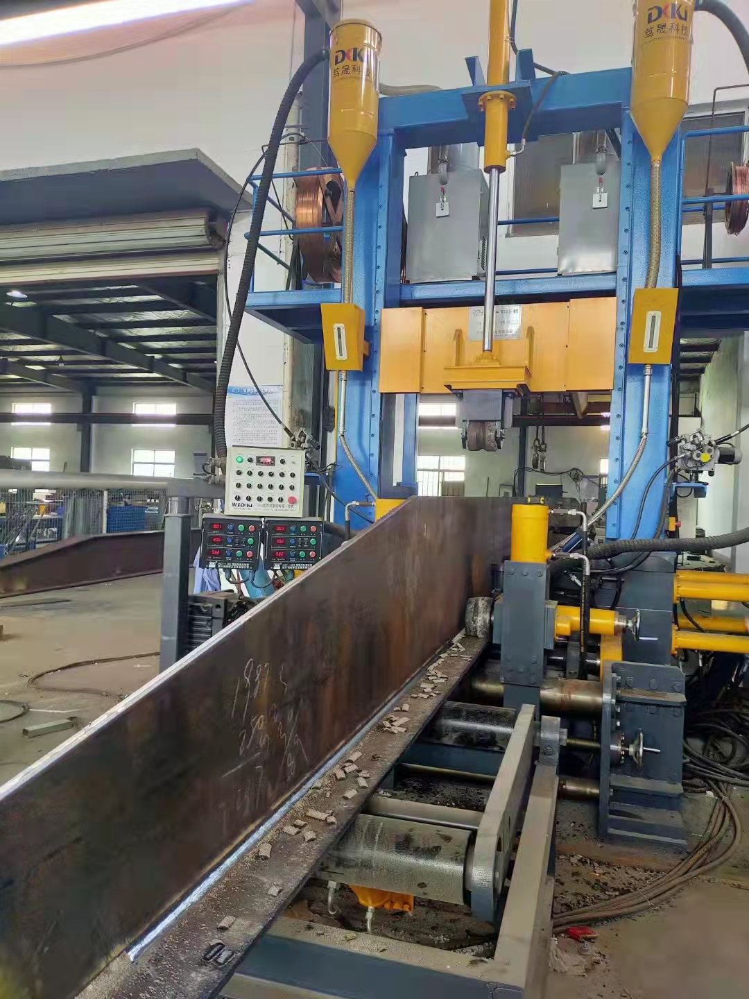 H型鋼組焊矯一體機(jī)是一種先進(jìn)高效的H型鋼焊接生產(chǎn)設(shè)備,集H型鋼的精確組立、二氧化碳或埋弧焊焊接、翼緣板焊接變形矯正于一體。設(shè)備占地面積少,單位生產(chǎn)面積的產(chǎn)出量高,是生產(chǎn)輕型焊接H型鋼和T型鋼的理想設(shè)備。